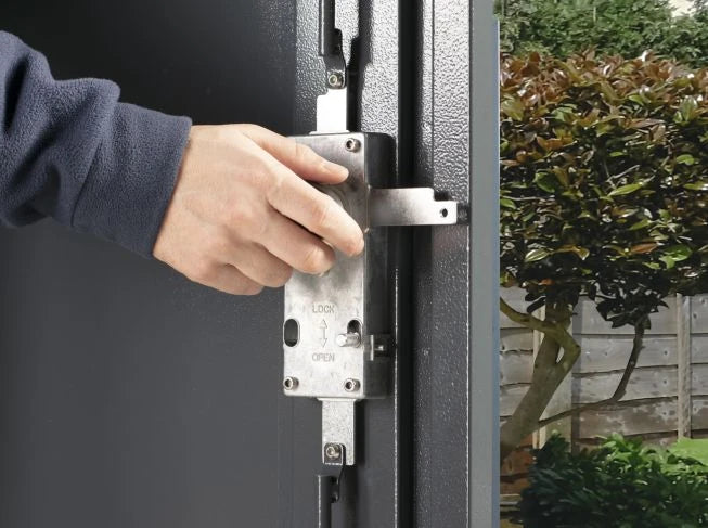 - Heavy Duty, 3-point shed locking system - with snap-off handle.