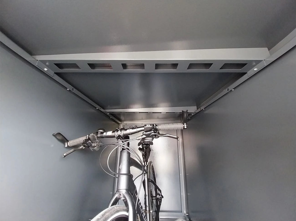 - Small footprint ideal for the side of a house or flat - compact, bike locker.
